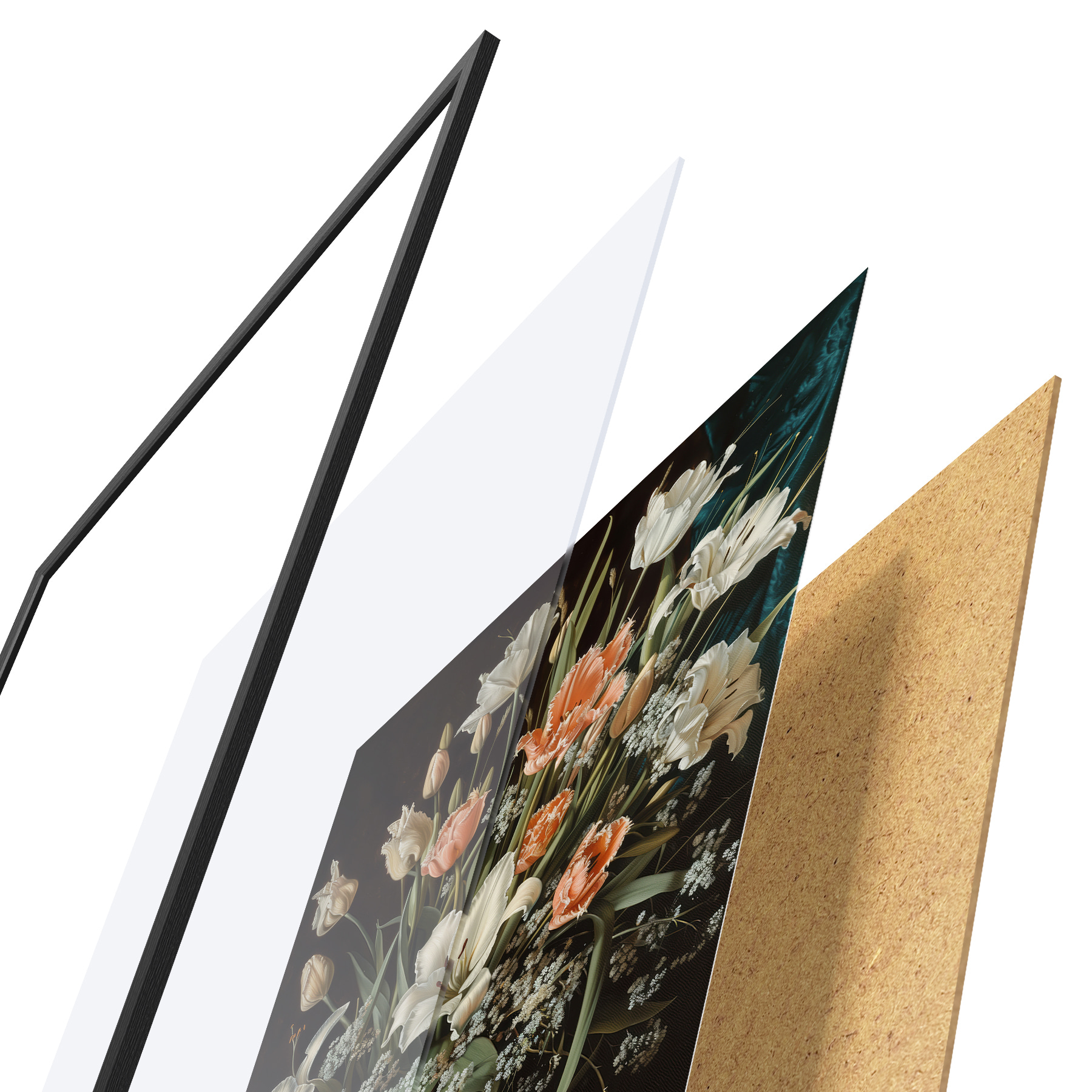 Plakatą sudaro rėmas, pleksiklas, atspausdintas vaizdas ir medžio drožlių plokštės pagrindas. Plakatą galima iš karto pakabinti ant sienos dėl kitoje pusėje esančių laikiklių.