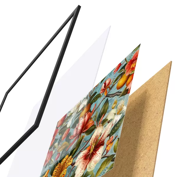 Plakatą sudaro rėmas, pleksiklas, atspausdintas vaizdas ir medžio drožlių plokštės pagrindas. Plakatą galima iš karto pakabinti ant sienos dėl kitoje pusėje esančių laikiklių.