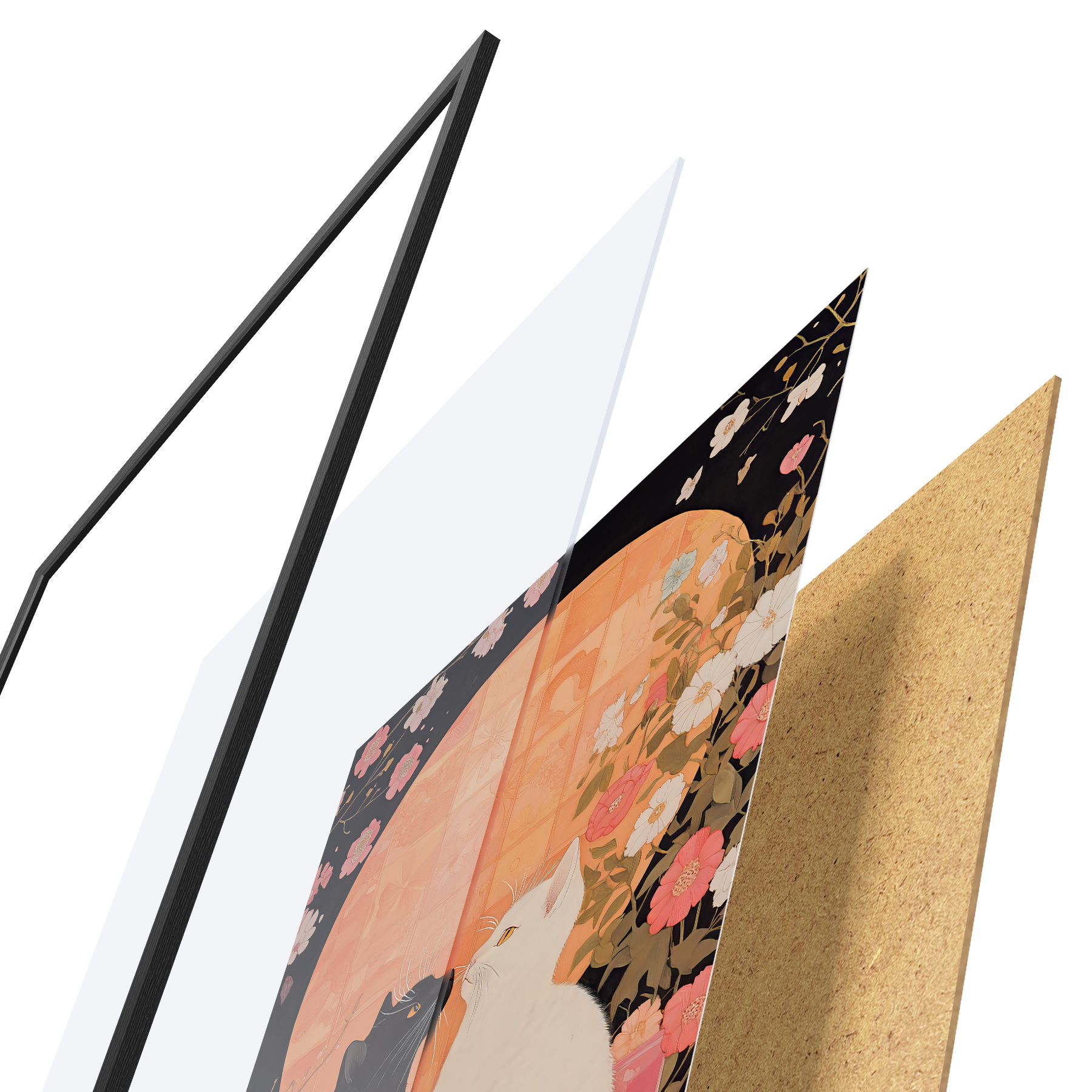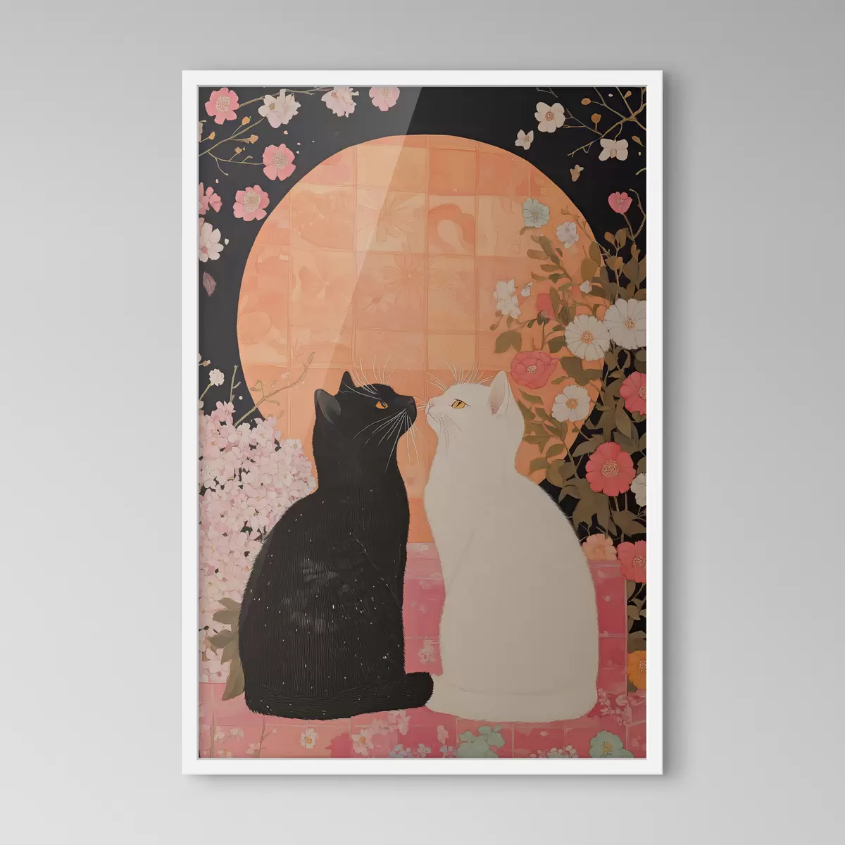 Plakatas Juoda ir balta katės, kurios saulėlydžio metu mielai žvelgia viena į kitą Ne f40669