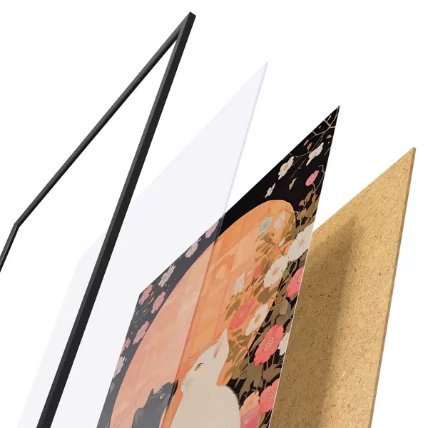 Plakatą sudaro rėmas, pleksiklas, atspausdintas vaizdas ir medžio drožlių plokštės pagrindas. Plakatą galima iš karto pakabinti ant sienos dėl kitoje pusėje esančių laikiklių.