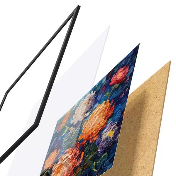 Plakatą sudaro rėmas, pleksiklas, atspausdintas vaizdas ir medžio drožlių plokštės pagrindas. Plakatą galima iš karto pakabinti ant sienos dėl kitoje pusėje esančių laikiklių.