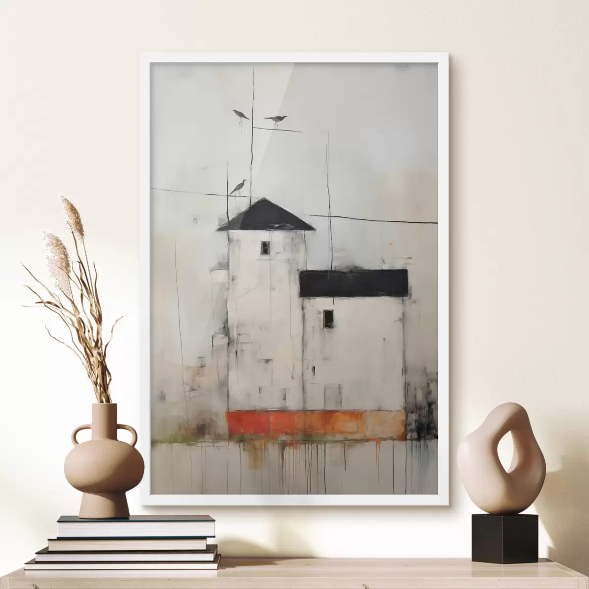 Plakatas Balti namai su juodais stogais, tapyti įbrėžimų ir purvo įbrėžimų tekstūra f40685