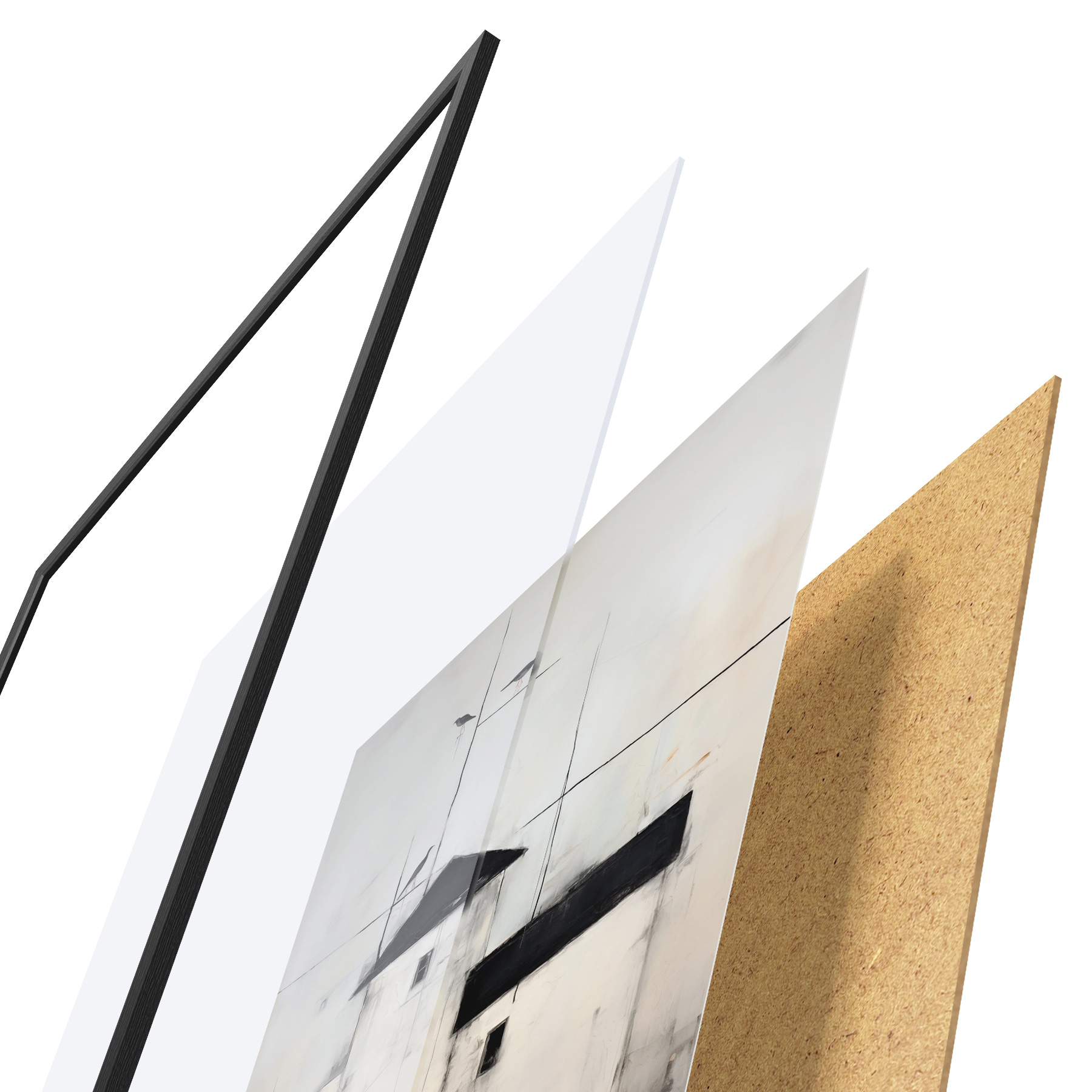 Plakatą sudaro rėmas, pleksiklas, atspausdintas vaizdas ir medžio drožlių plokštės pagrindas. Plakatą galima iš karto pakabinti ant sienos dėl kitoje pusėje esančių laikiklių.