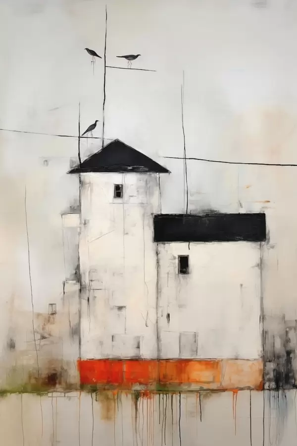 Plakatas Balti namai su juodais stogais, tapyti įbrėžimų ir purvo įbrėžimų tekstūra f40685