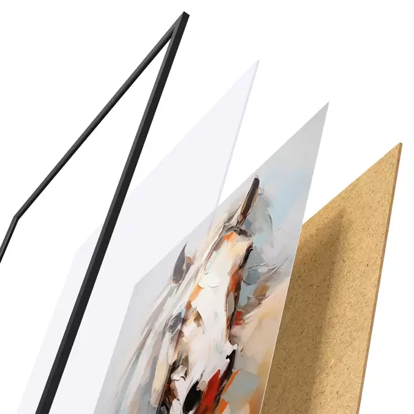 Plakatą sudaro rėmas, pleksiklas, atspausdintas vaizdas ir medžio drožlių plokštės pagrindas. Plakatą galima iš karto pakabinti ant sienos dėl kitoje pusėje esančių laikiklių.