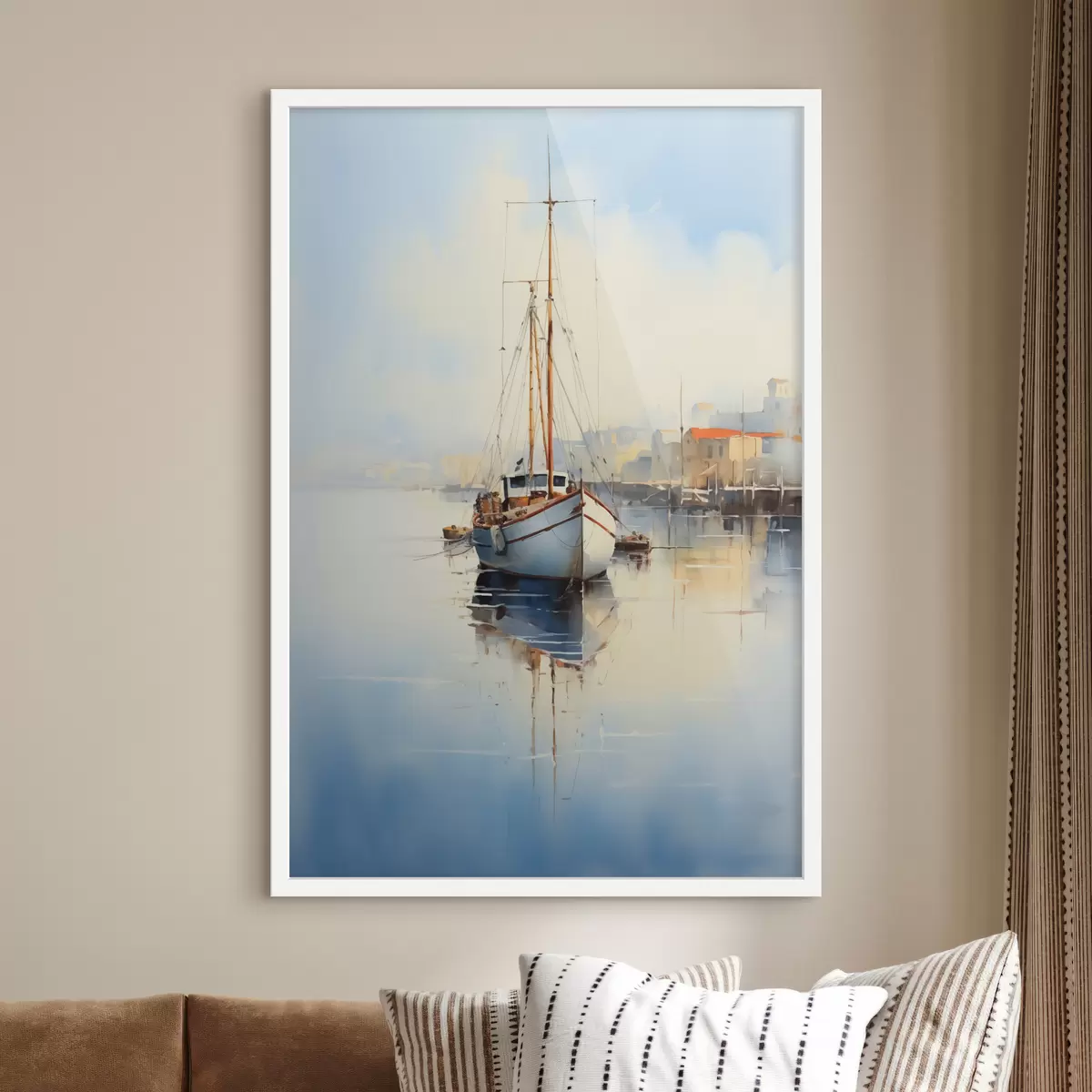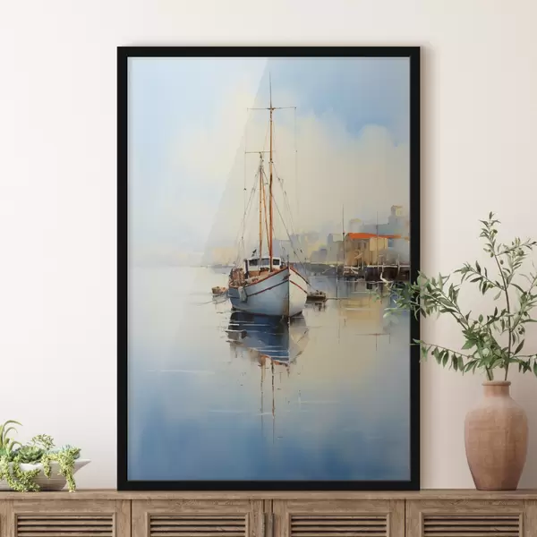 Plakatas Žvejybos laivas prieplaukoje prie jūros šlapia akvarelė f40688