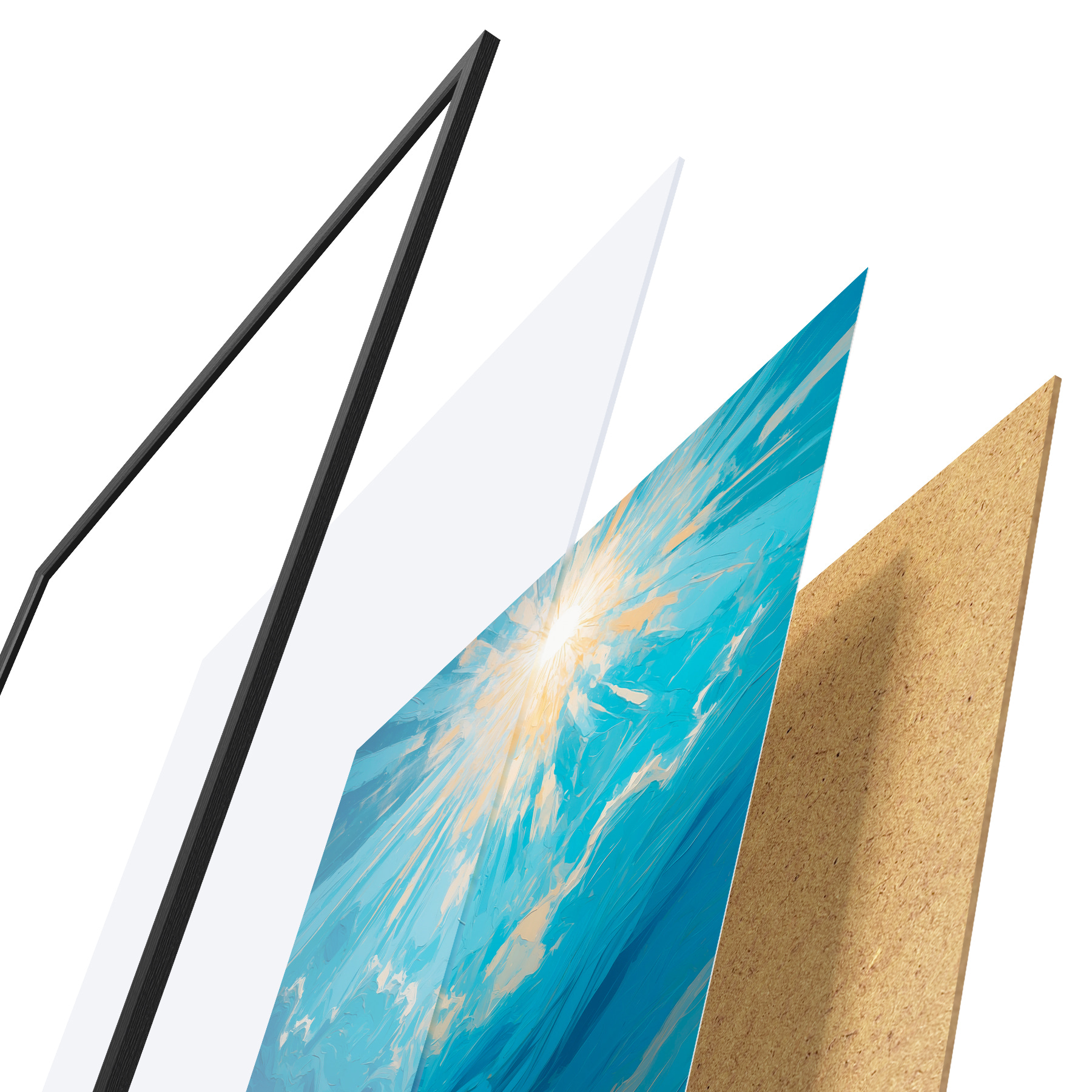 Plakatą sudaro rėmas, pleksiklas, atspausdintas vaizdas ir medžio drožlių plokštės pagrindas. Plakatą galima iš karto pakabinti ant sienos dėl kitoje pusėje esančių laikiklių.