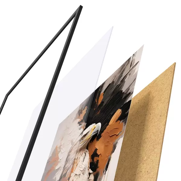 Plakatą sudaro rėmas, pleksiklas, atspausdintas vaizdas ir medžio drožlių plokštės pagrindas. Plakatą galima iš karto pakabinti ant sienos dėl kitoje pusėje esančių laikiklių.