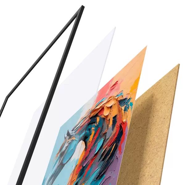 Plakatą sudaro rėmas, pleksiklas, atspausdintas vaizdas ir medžio drožlių plokštės pagrindas. Plakatą galima iš karto pakabinti ant sienos dėl kitoje pusėje esančių laikiklių.