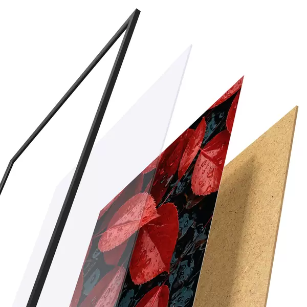 Plakatą sudaro rėmas, pleksiklas, atspausdintas vaizdas ir medžio drožlių plokštės pagrindas. Plakatą galima iš karto pakabinti ant sienos dėl kitoje pusėje esančių laikiklių.
