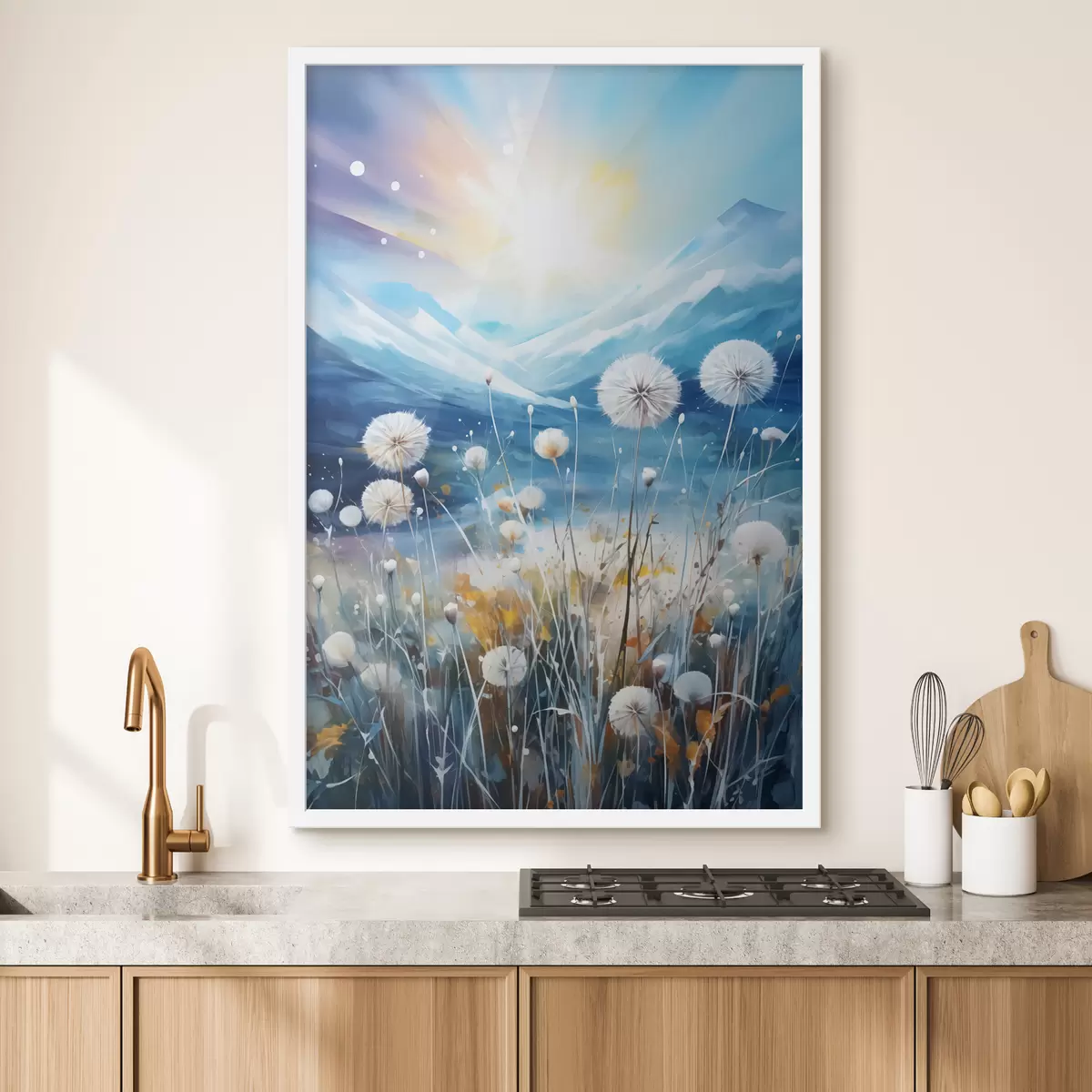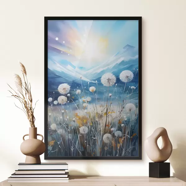 Plakatas Baltos pienės mėlynų kalnų fone Ne f40720