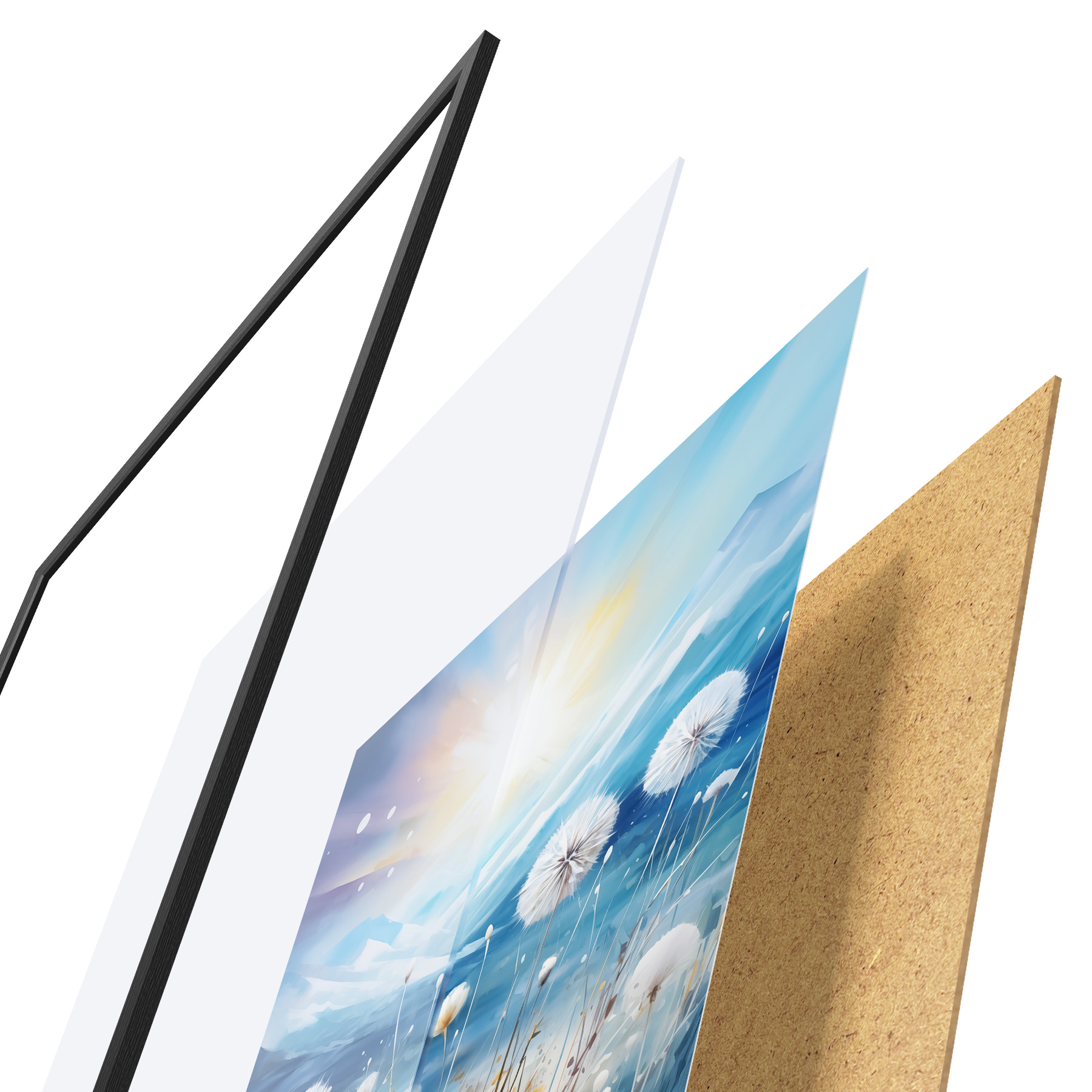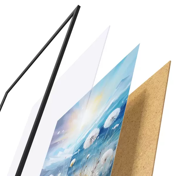 Plakatą sudaro rėmas, pleksiklas, atspausdintas vaizdas ir medžio drožlių plokštės pagrindas. Plakatą galima iš karto pakabinti ant sienos dėl kitoje pusėje esančių laikiklių.