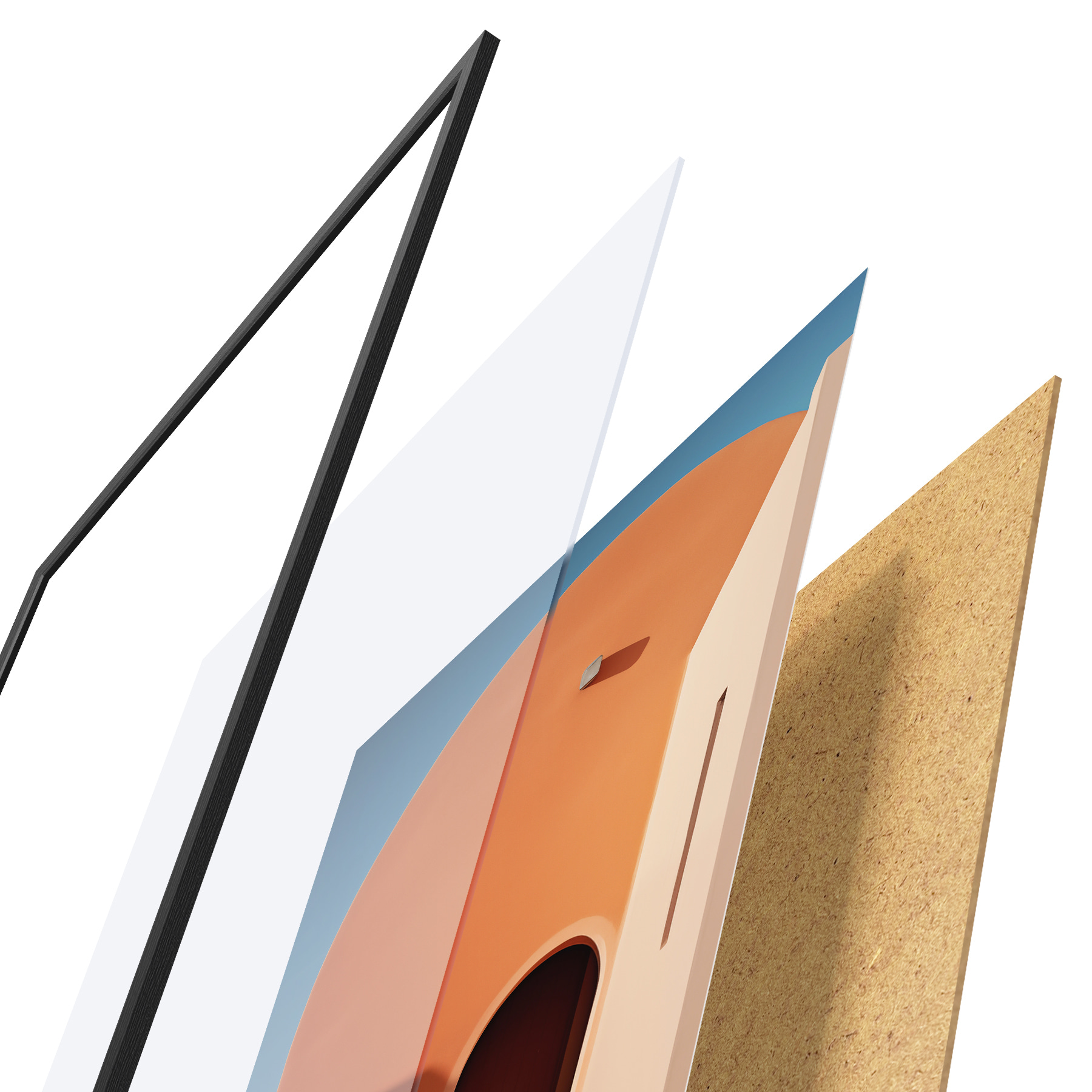 Plakatą sudaro rėmas, pleksiklas, atspausdintas vaizdas ir medžio drožlių plokštės pagrindas. Plakatą galima iš karto pakabinti ant sienos dėl kitoje pusėje esančių laikiklių.