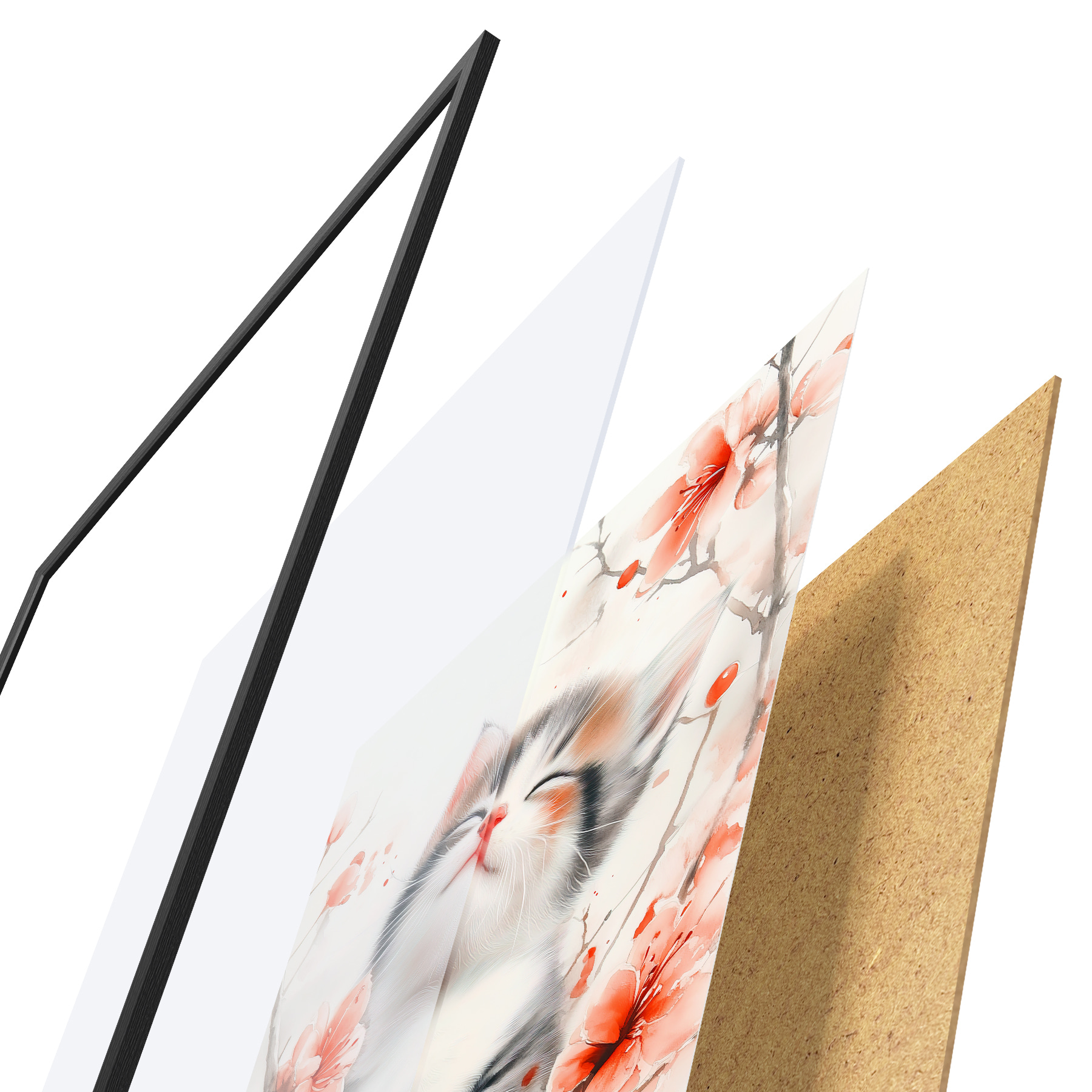 Plakatą sudaro rėmas, pleksiklas, atspausdintas vaizdas ir medžio drožlių plokštės pagrindas. Plakatą galima iš karto pakabinti ant sienos dėl kitoje pusėje esančių laikiklių.