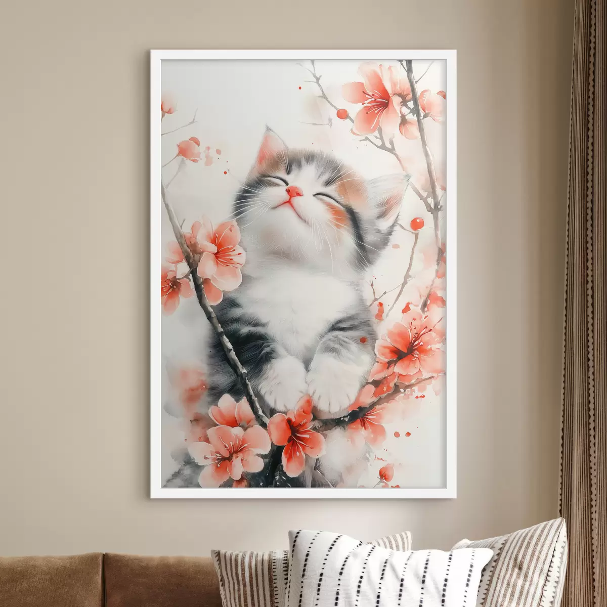 Plakatas Mielas kačiukas ant šakos su gėlėmis f40734