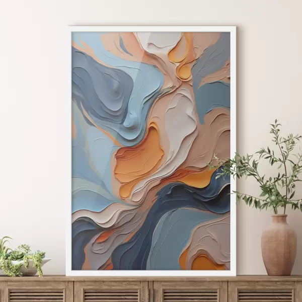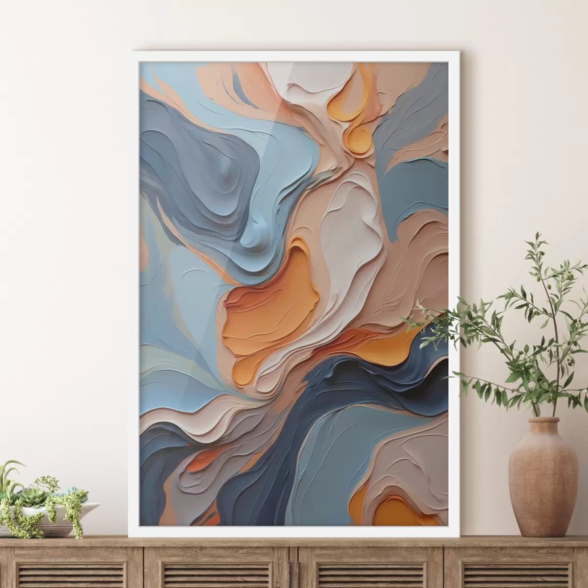 Plakatas Mėlynų ir oranžinių atspalvių abstrakcija su tekstūros imitacija f40743