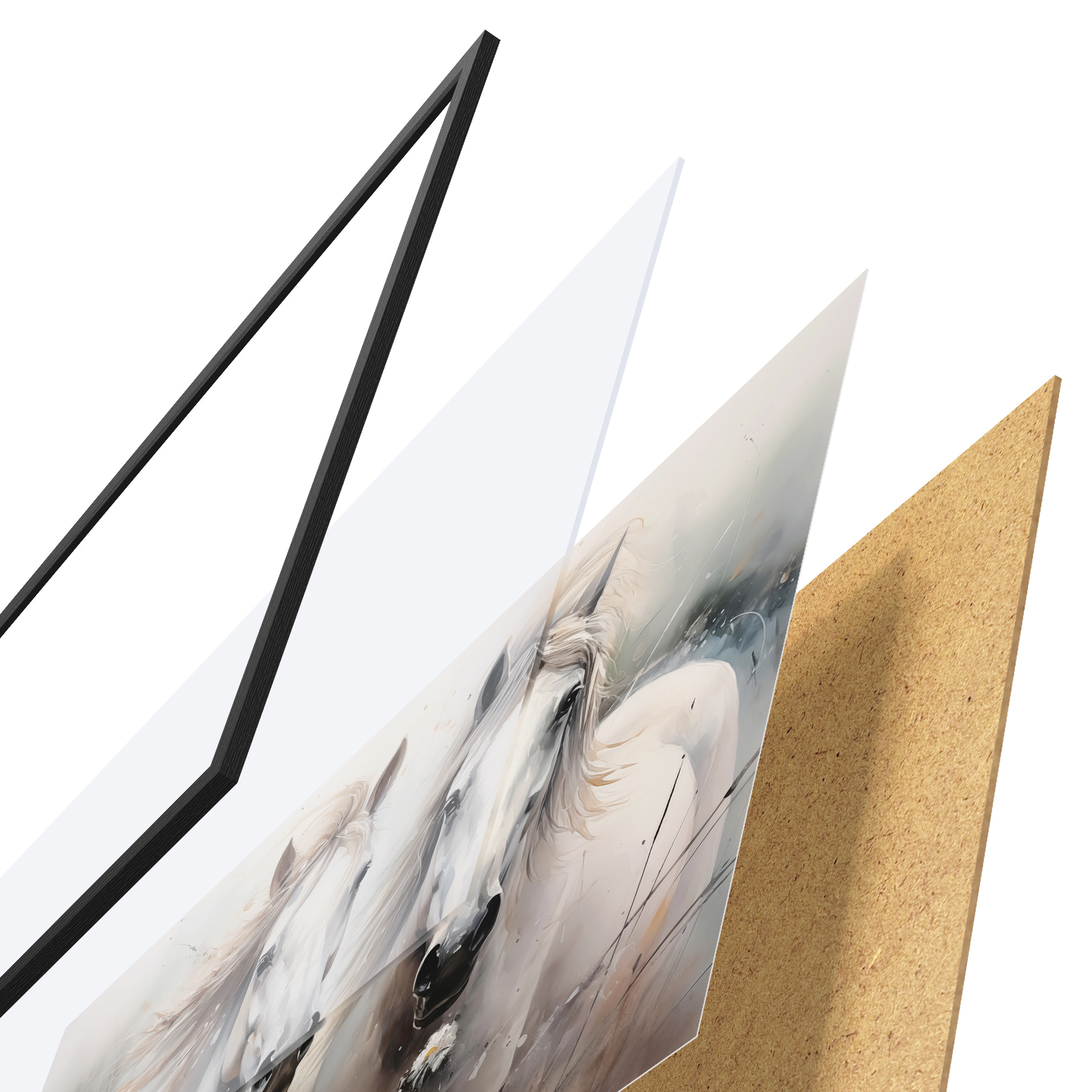 Plakatą sudaro rėmas, pleksiklas, atspausdintas vaizdas ir medžio drožlių plokštės pagrindas. Plakatą galima iš karto pakabinti ant sienos dėl kitoje pusėje esančių laikiklių.