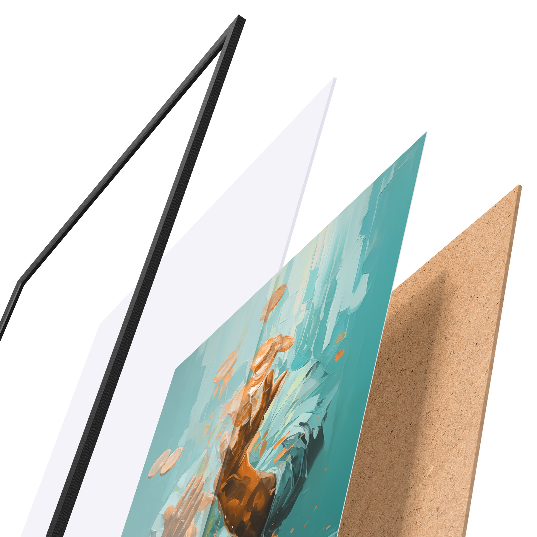 Plakatą sudaro rėmas, pleksiklas, atspausdintas vaizdas ir medžio drožlių plokštės pagrindas. Plakatą galima iš karto pakabinti ant sienos dėl kitoje pusėje esančių laikiklių.