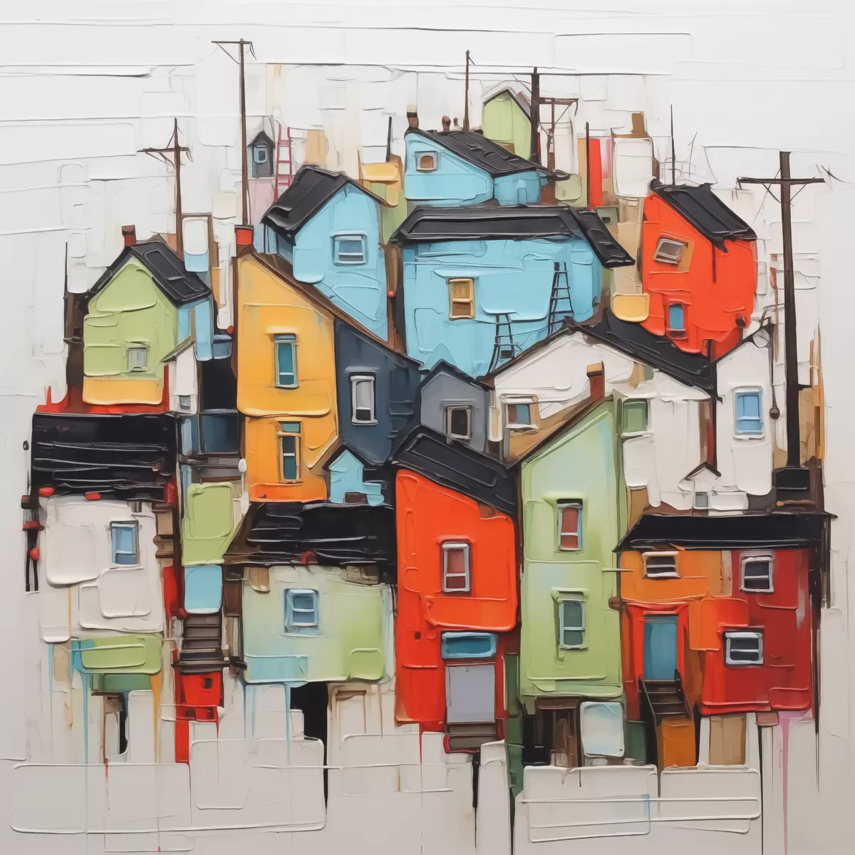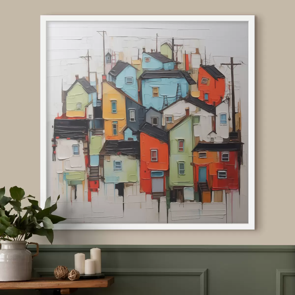 Plakatas Abstraktūs nameliai, imituojantys teptuko potėpį f40760