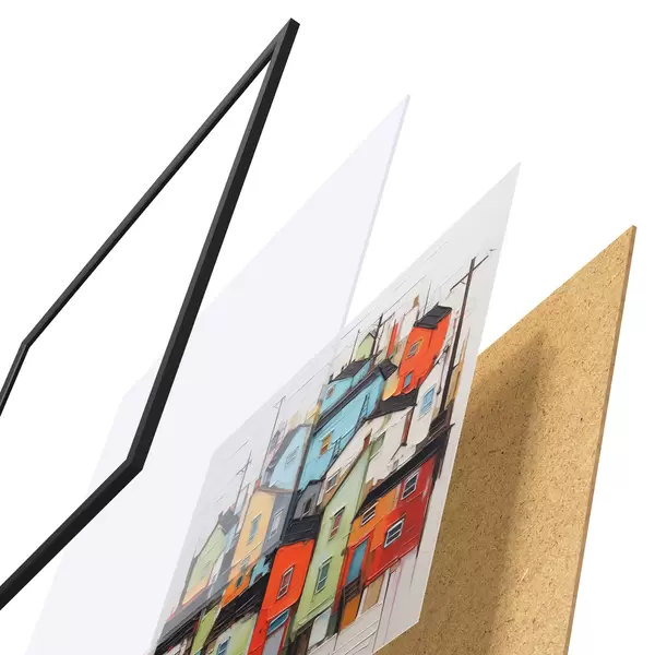 Plakatą sudaro rėmas, pleksiklas, atspausdintas vaizdas ir medžio drožlių plokštės pagrindas. Plakatą galima iš karto pakabinti ant sienos dėl kitoje pusėje esančių laikiklių.