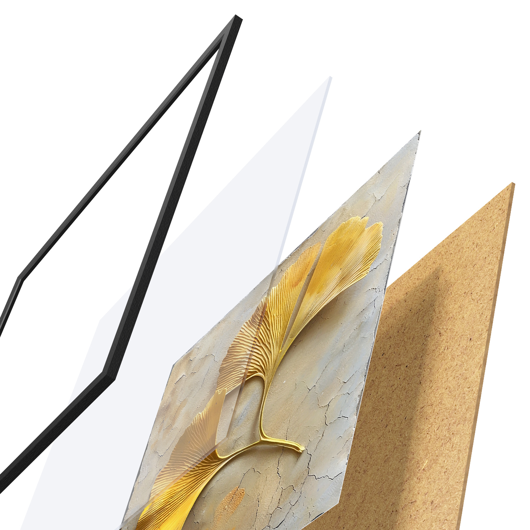 Plakatą sudaro rėmas, pleksiklas, atspausdintas vaizdas ir medžio drožlių plokštės pagrindas. Plakatą galima iš karto pakabinti ant sienos dėl kitoje pusėje esančių laikiklių.