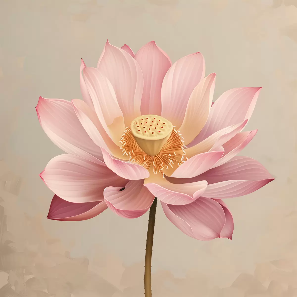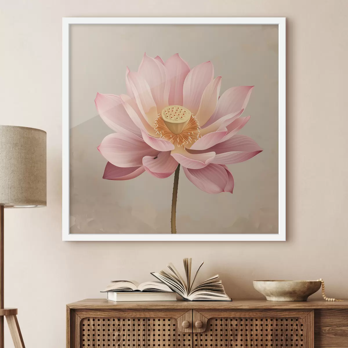 Plakatas Rožinis lotosas smėlio spalvos fone f40769