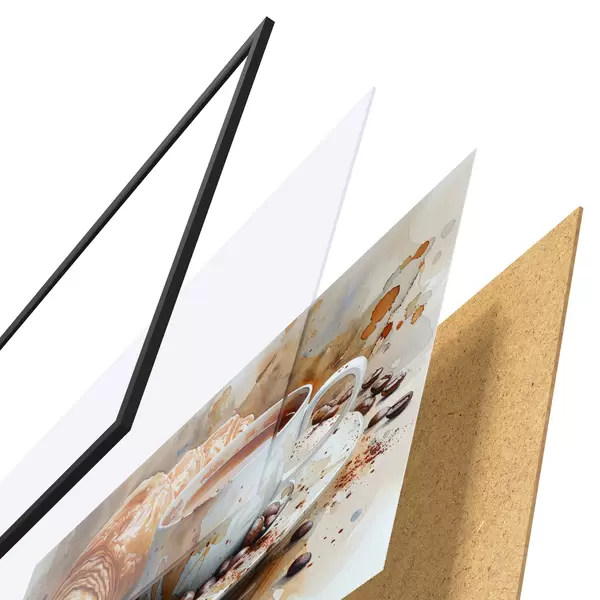 Plakatą sudaro rėmas, pleksiklas, atspausdintas vaizdas ir medžio drožlių plokštės pagrindas. Plakatą galima iš karto pakabinti ant sienos dėl kitoje pusėje esančių laikiklių.