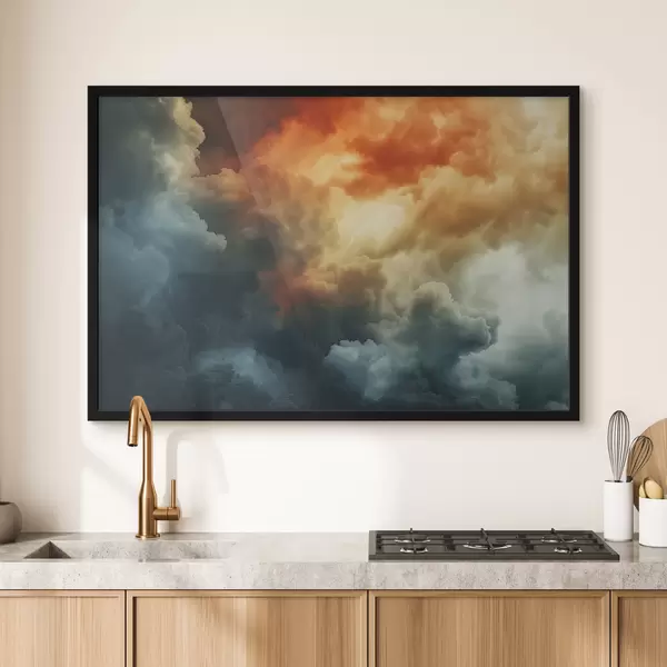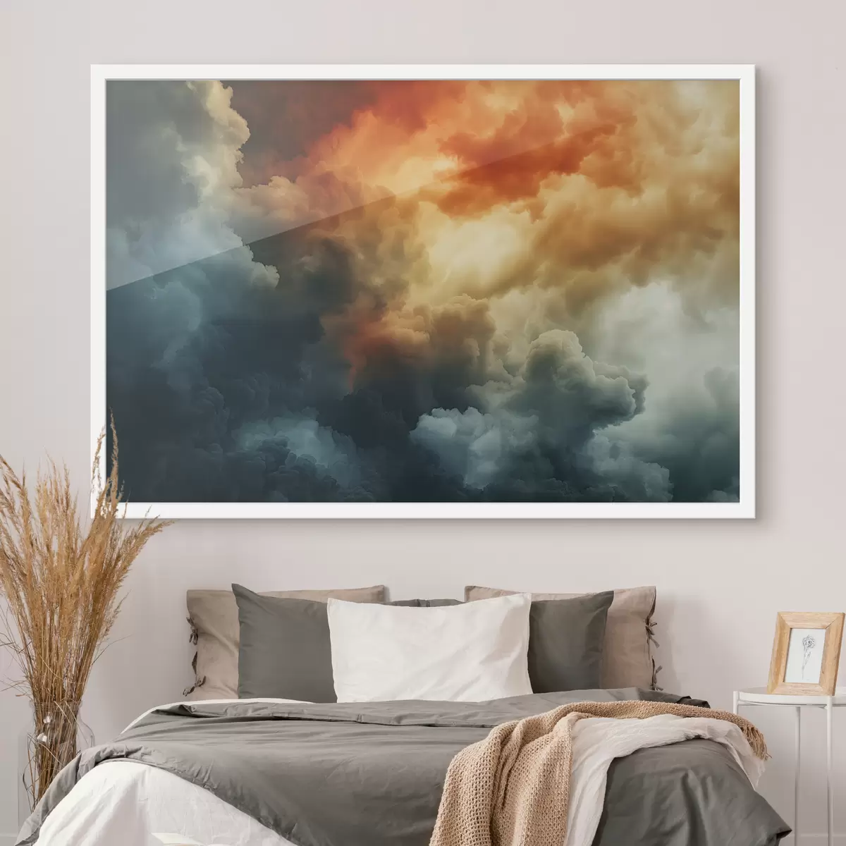 Plakatas Debesys, tamsiai mėlyna, oranžinė, antikvarinė f40784
