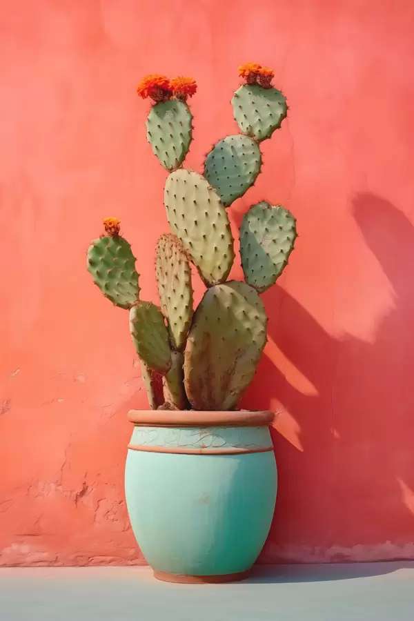 Plakatas Kaktusas šviesiame vazone prie rausvai raudonos sienos Ne f40800