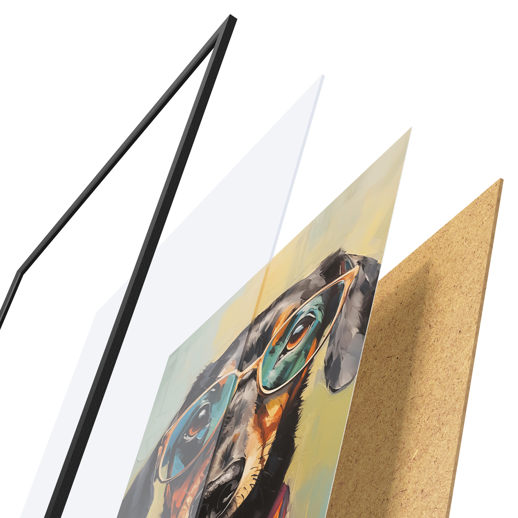 Plakatą sudaro rėmas, pleksiklas, atspausdintas vaizdas ir medžio drožlių plokštės pagrindas. Plakatą galima iš karto pakabinti ant sienos dėl kitoje pusėje esančių laikiklių.