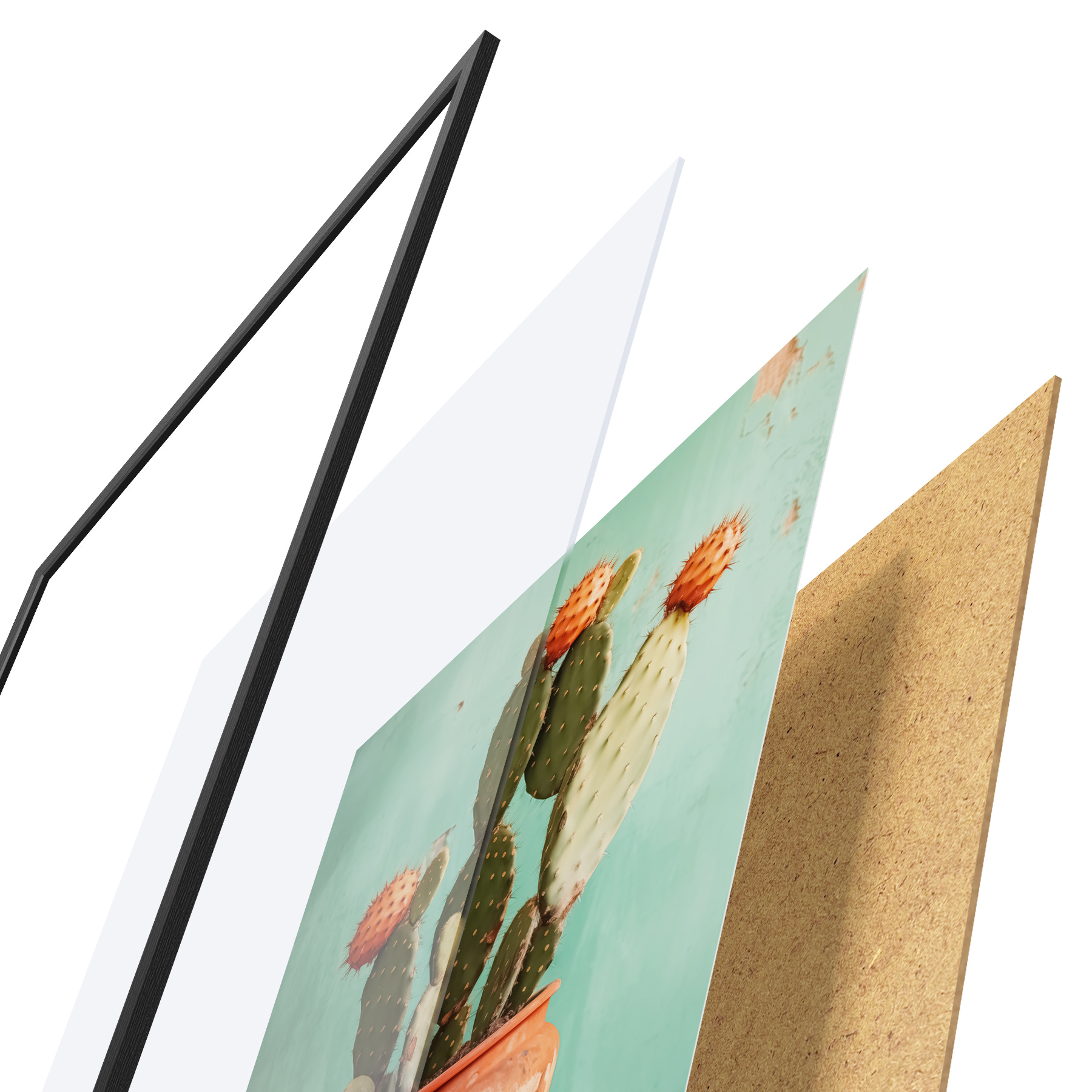 Plakatą sudaro rėmas, pleksiklas, atspausdintas vaizdas ir medžio drožlių plokštės pagrindas. Plakatą galima iš karto pakabinti ant sienos dėl kitoje pusėje esančių laikiklių.