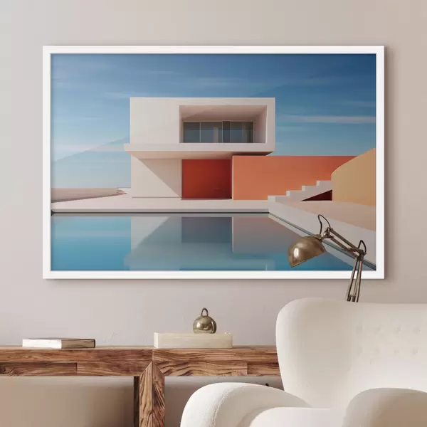 Plakatas Minimalistinės architektūros kraštovaizdis, namas ir baseinas f40811