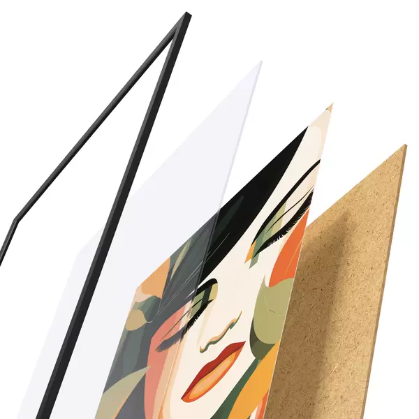 Plakatą sudaro rėmas, pleksiklas, atspausdintas vaizdas ir medžio drožlių plokštės pagrindas. Plakatą galima iš karto pakabinti ant sienos dėl kitoje pusėje esančių laikiklių.