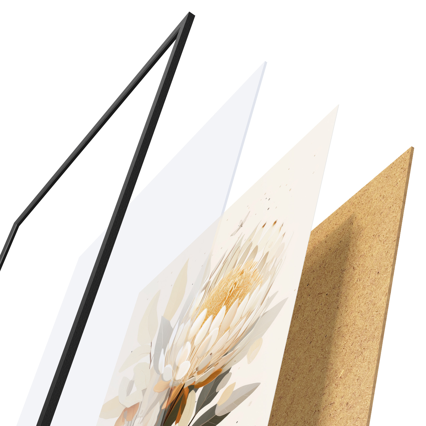 Plakatas Protea gėlė švelniai smėlio spalvos paletėje, gėlių abstrakcija Ne f40819