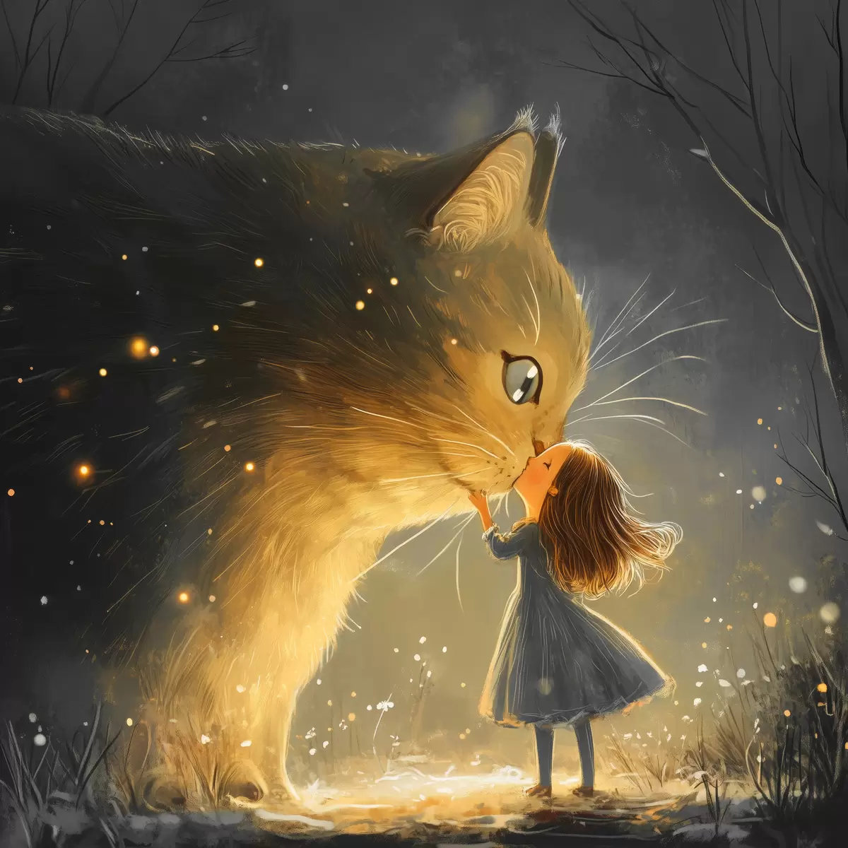Plakatas Mergaitė pabučiuoja katę Ne f40825