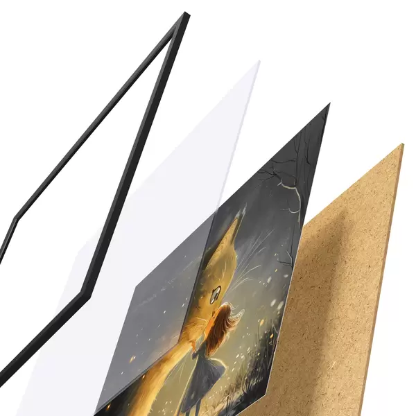 Plakatą sudaro rėmas, pleksiklas, atspausdintas vaizdas ir medžio drožlių plokštės pagrindas. Plakatą galima iš karto pakabinti ant sienos dėl kitoje pusėje esančių laikiklių.