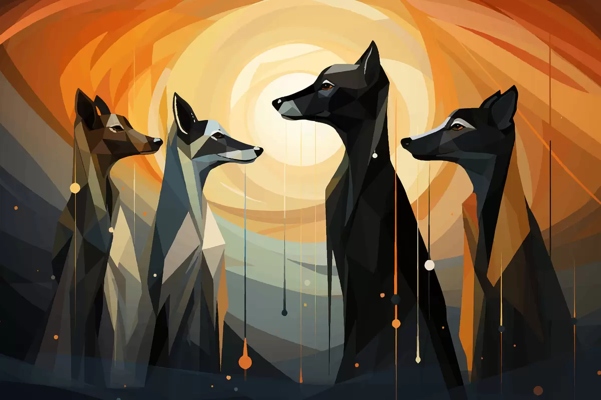 Plakatas Abstrakcija, ryškios spalvos, šunys f40836