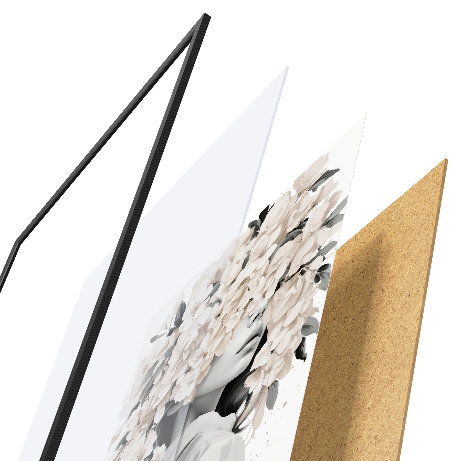 Plakatas Mergaitė su gėlėmis ant veido juodos ir baltos spalvų Ne f40849