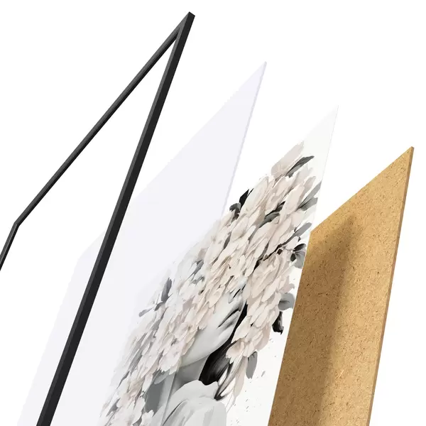 Plakatą sudaro rėmas, pleksiklas, atspausdintas vaizdas ir medžio drožlių plokštės pagrindas. Plakatą galima iš karto pakabinti ant sienos dėl kitoje pusėje esančių laikiklių.