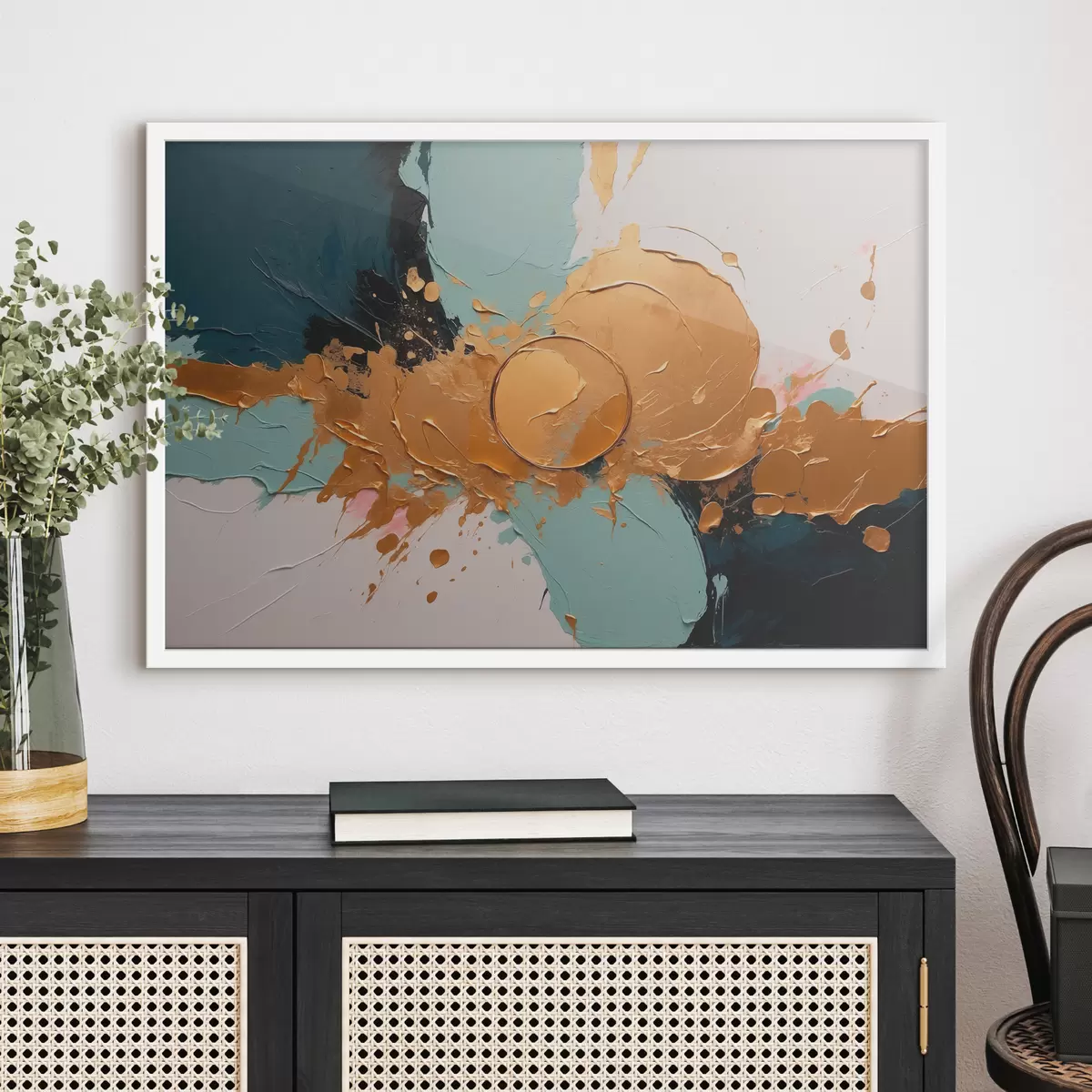 Plakatas Abstrakti tapyba aliejiniais dažais su balta, juoda ir spalvomis f40855