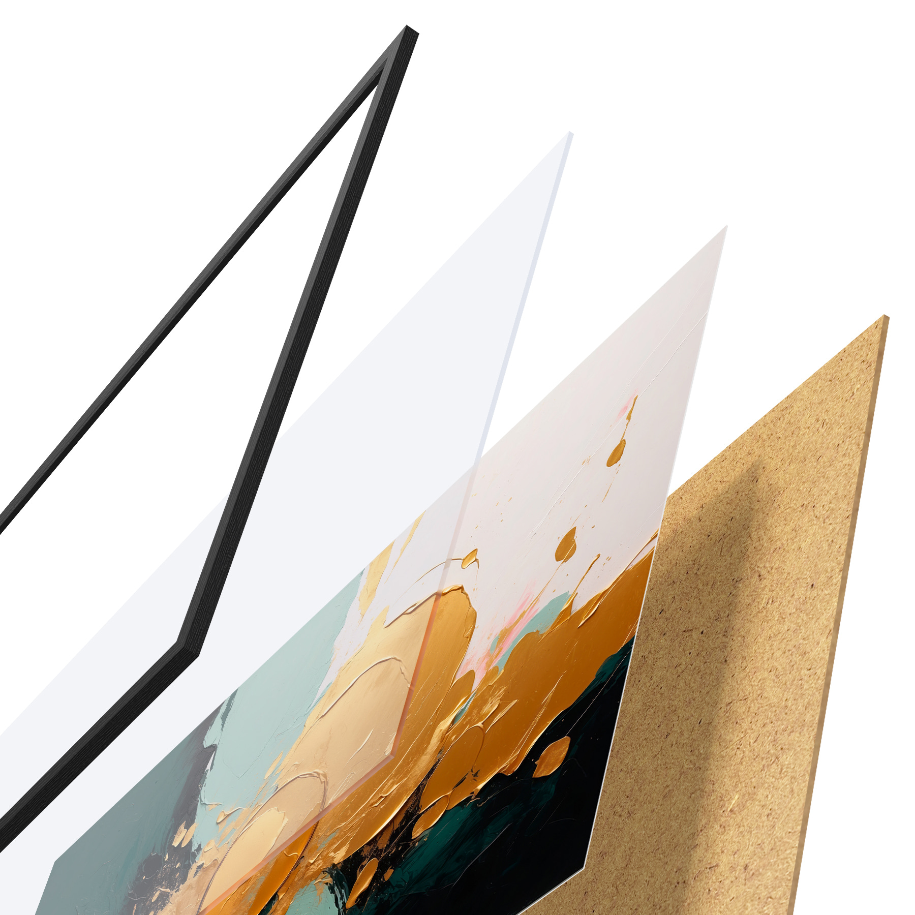 Plakatą sudaro rėmas, pleksiklas, atspausdintas vaizdas ir medžio drožlių plokštės pagrindas. Plakatą galima iš karto pakabinti ant sienos dėl kitoje pusėje esančių laikiklių.