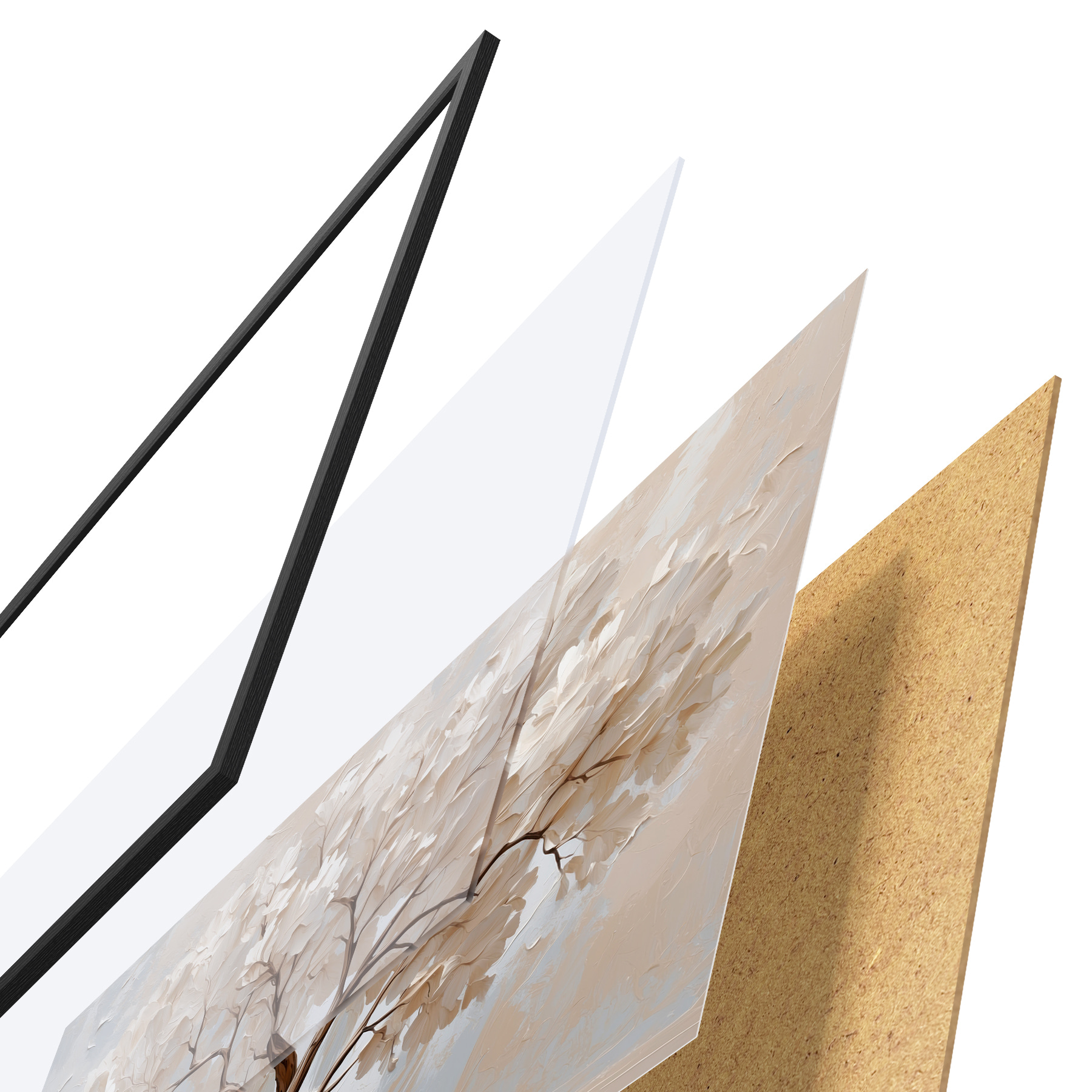 Plakatą sudaro rėmas, pleksiklas, atspausdintas vaizdas ir medžio drožlių plokštės pagrindas. Plakatą galima iš karto pakabinti ant sienos dėl kitoje pusėje esančių laikiklių.