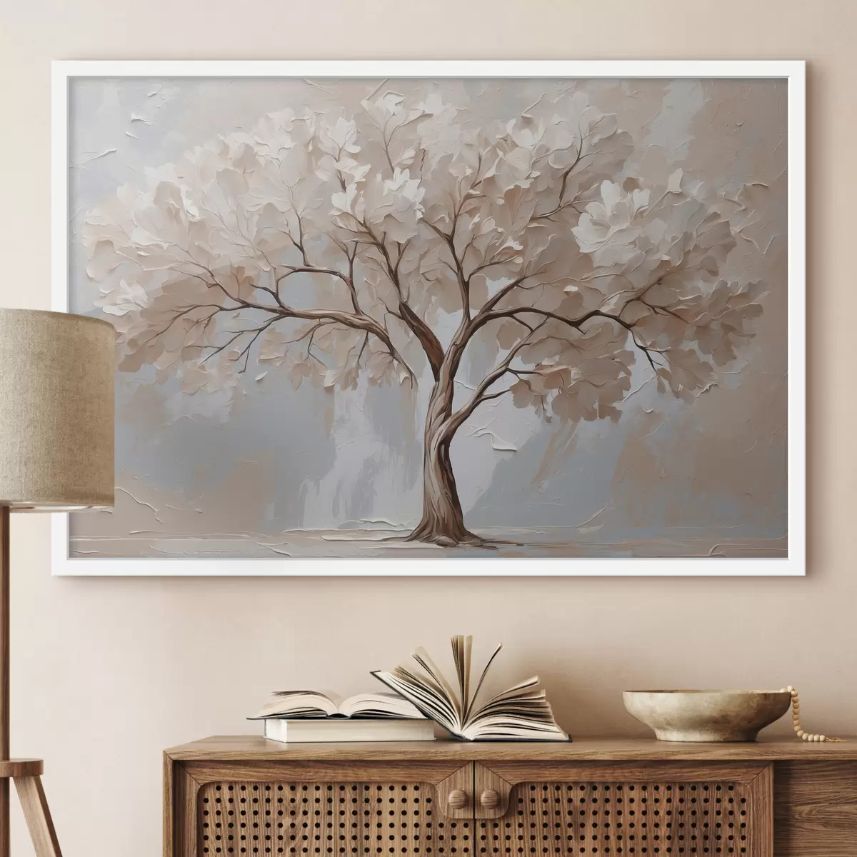 Plakatas Baltas medis abstrakčiame aliejiniame fone f40860