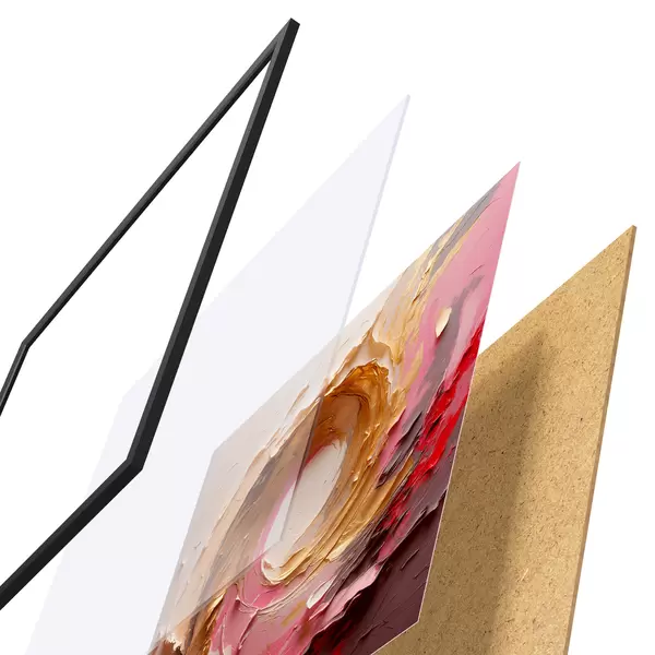 Plakatą sudaro rėmas, pleksiklas, atspausdintas vaizdas ir medžio drožlių plokštės pagrindas. Plakatą galima iš karto pakabinti ant sienos dėl kitoje pusėje esančių laikiklių.