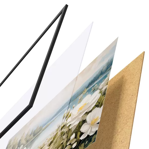 Plakatą sudaro rėmas, pleksiklas, atspausdintas vaizdas ir medžio drožlių plokštės pagrindas. Plakatą galima iš karto pakabinti ant sienos dėl kitoje pusėje esančių laikiklių.