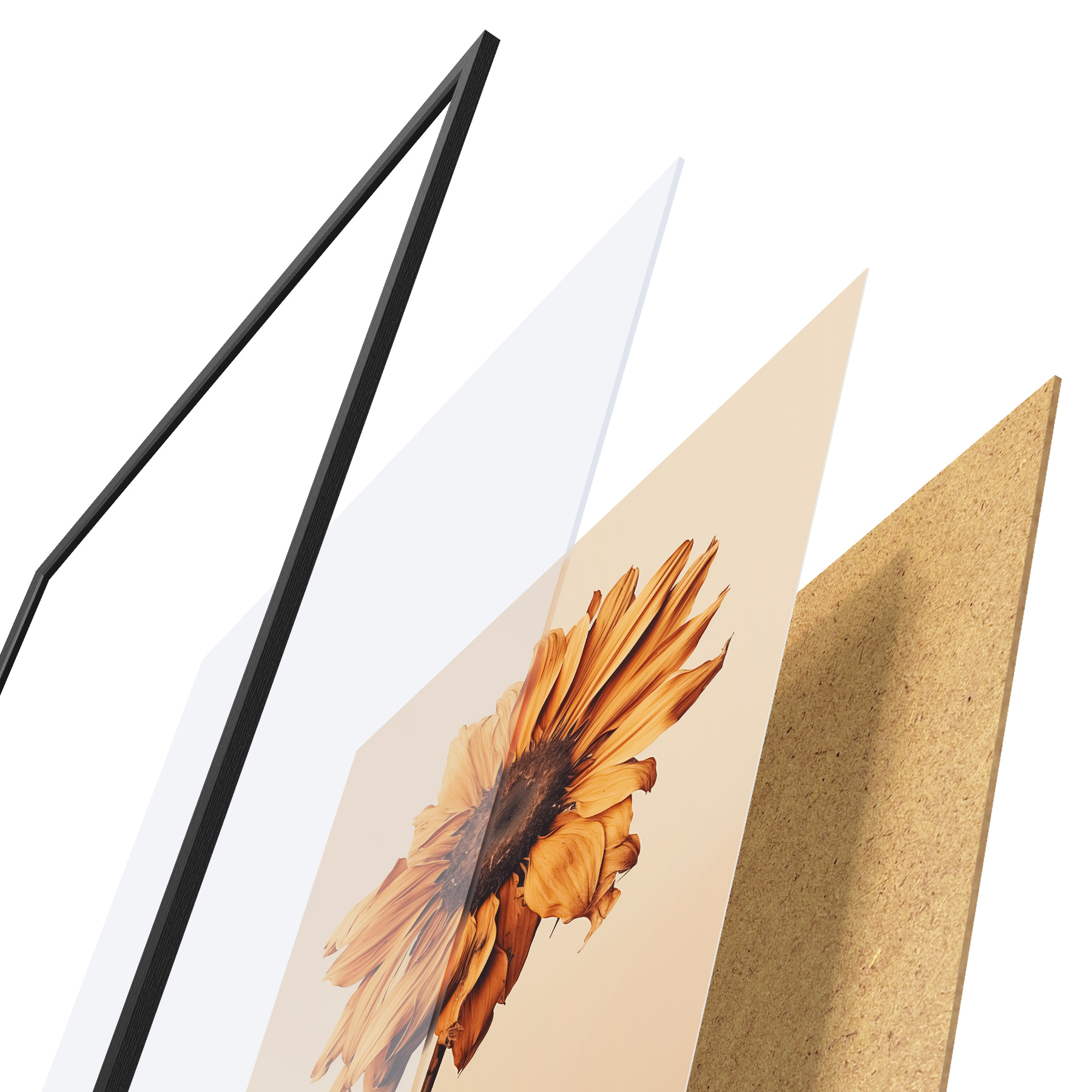 Plakatą sudaro rėmas, pleksiklas, atspausdintas vaizdas ir medžio drožlių plokštės pagrindas. Plakatą galima iš karto pakabinti ant sienos dėl kitoje pusėje esančių laikiklių.