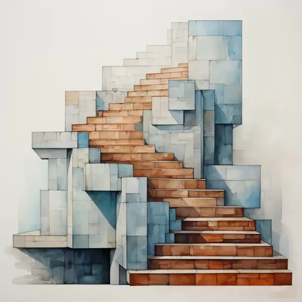 Plakatas Akmeniniai laiptai abstraktus architektūrinis kraštovaizdis akvarelė f40891