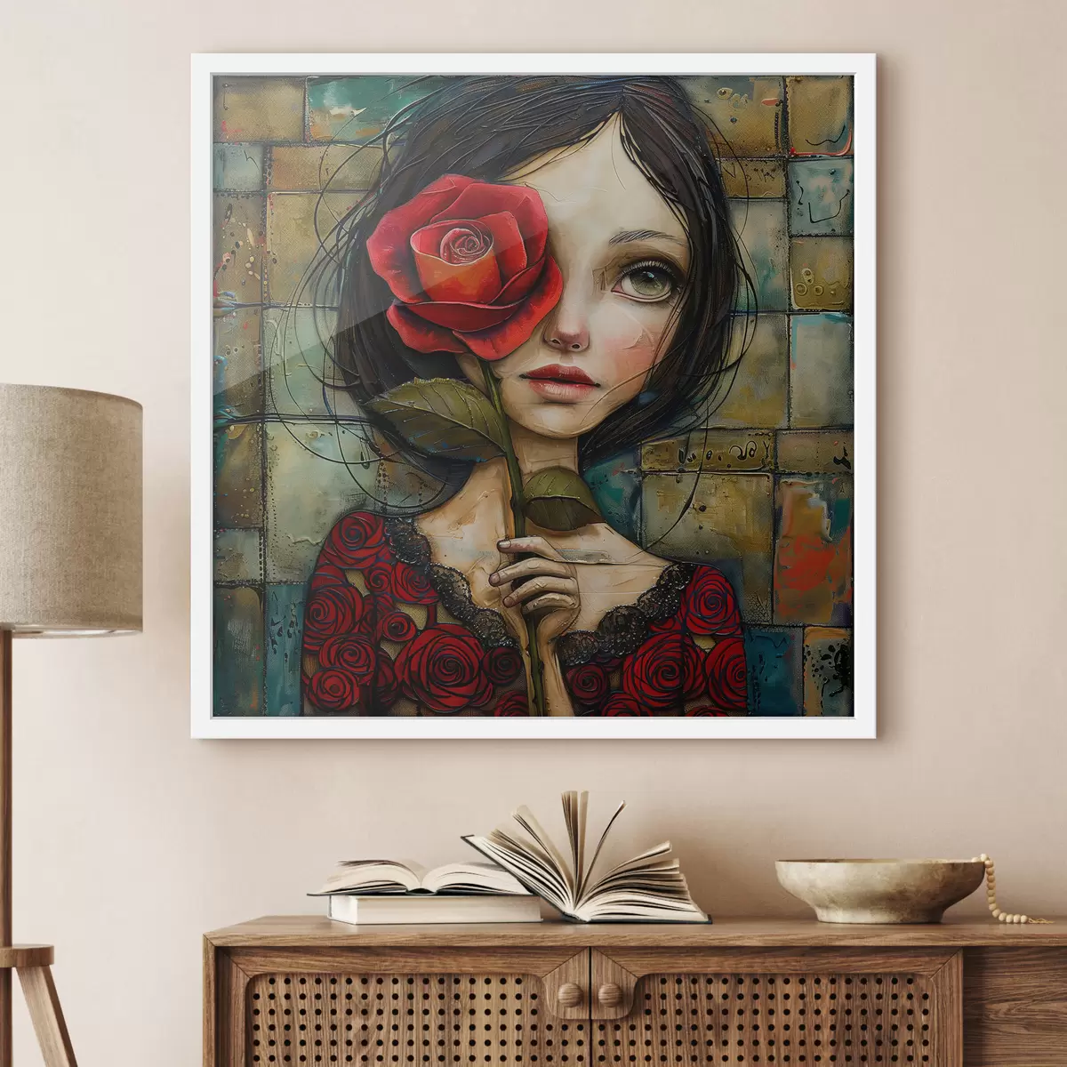 Plakatas Akvarelė mergaitė su rože Ne f40895