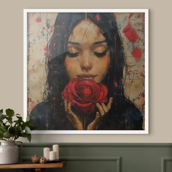 Plakatas Mergaitė su raudona rože f40898