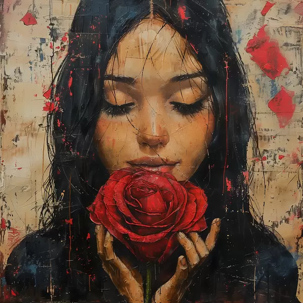 Plakatas Mergaitė su raudona rože f40898